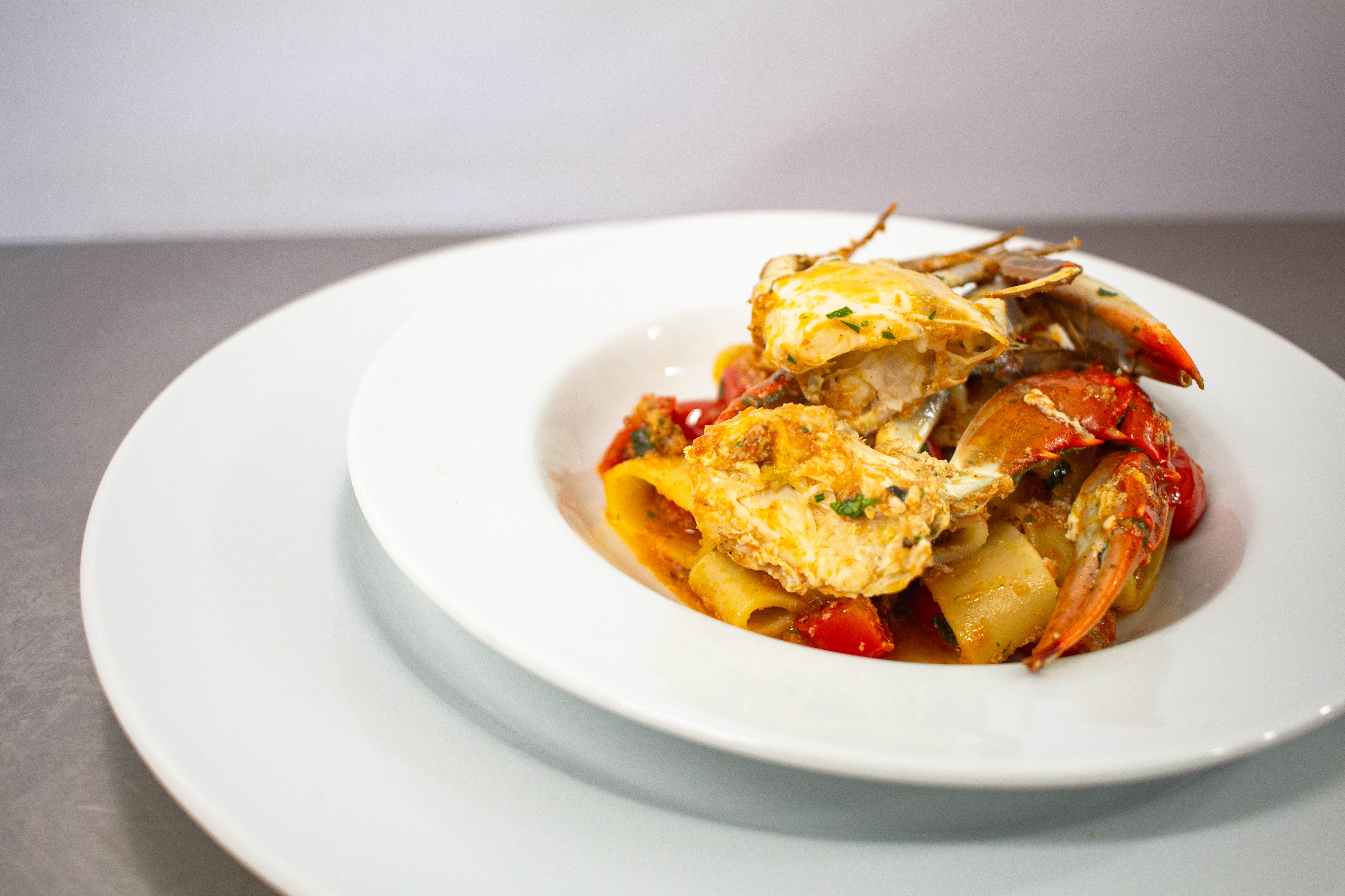 Arrivi giornalieri, un approvvigionamento sempre freschissimo a base di spigole, tonno, cozze, vongole, triglie, granchi, orate, sgombri, scorfani, aragoste, cicale, seppie e molto altro. Grande cura, tanta ricerca e un infinito amore per la materia prima sono gli ingredienti che ogni giorno ci guidano nel selezionare ciò che il mare ha da offrirci, nel rispetto delle stagioni e delle condizioni di pesca.