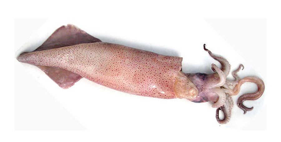 Il Loligo vulgaris è un mollusco cefalopode della famiglia dei Loliginidae. Costituito da una conchiglia interna, il calamaro presenta sul suo lungo corpo due pinne laterali che raggiungono l’estremità posteriore della sacca, mentre la testa che sporge dal mantello ha gli occhi posizionati lateralmente. La clava, ossia l’insieme delle quattro braccia e di un paio di tentacoli, si trova attorno la bocca e le ventose poste in quattro serie vengono utilizzate dal calamaro per catturare le prede. Molluschi, pesci e crostacei sono il cibo preferito del cefalopode.
